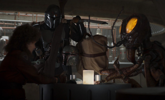 Ребенок проказничает, увидев икру, дождался момента, когда можно съесть пару штук. Останавливаться на этом он не стал, и каждый раз, когда мандалорец отворачивался, контейнер становился все легче. Но это не последняя проблема в дороге. Стражники Республики блуждают в этих окрестностях, и просят продиктовать код «Лезвия бритвы» Дина, чтобы сравнить его с возможными преступниками. Вскоре они сообщили, что собираются его задержать. Данный корабль был замечен при стыковке с тюрьмой, когда сбежал ужасный преступник. Чтобы избежать ареста, воин быстро направил корабль на ближайшую планету. Там находились ледники и вечный холод. Пытаясь скрыться от стражников, они попали в ловушку огромных пауков. Но позднее республиканцы спасли им жизнь, сообщив, что мандалорец не только преступник, но и настоящий герой. Корабль из-за столкновения с планетой получил разгерметизацию, но небольшой ремонт позволил им закрыться в кабине, и двигаться дальше в путь.
